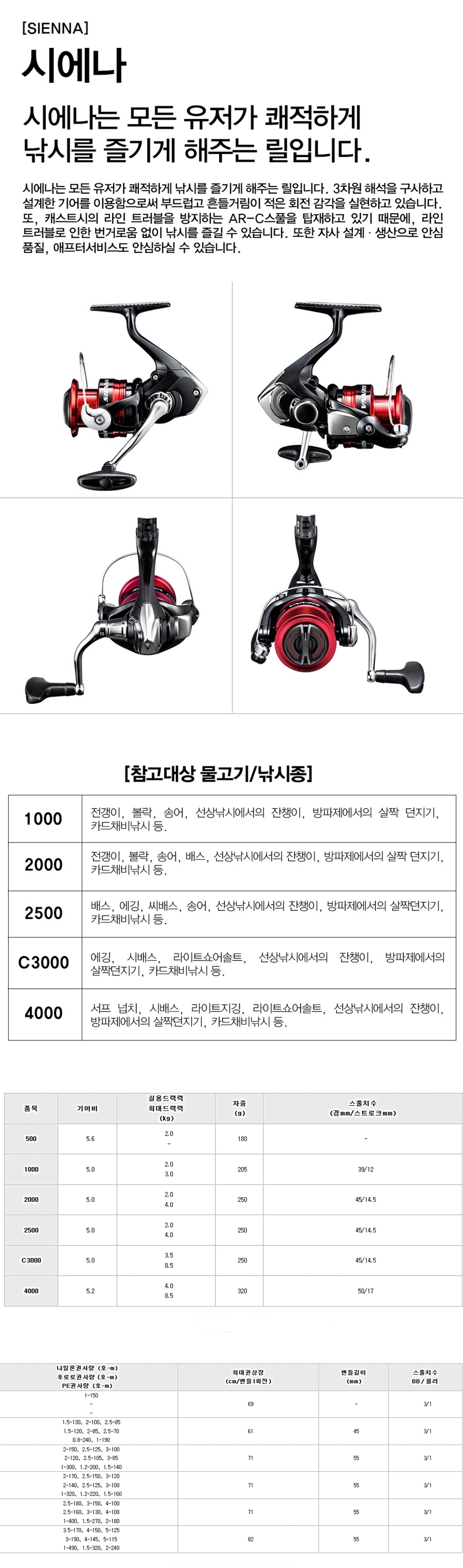 • 시마노 19 시에나 1000 FG 스피닝릴 전갱이 볼락